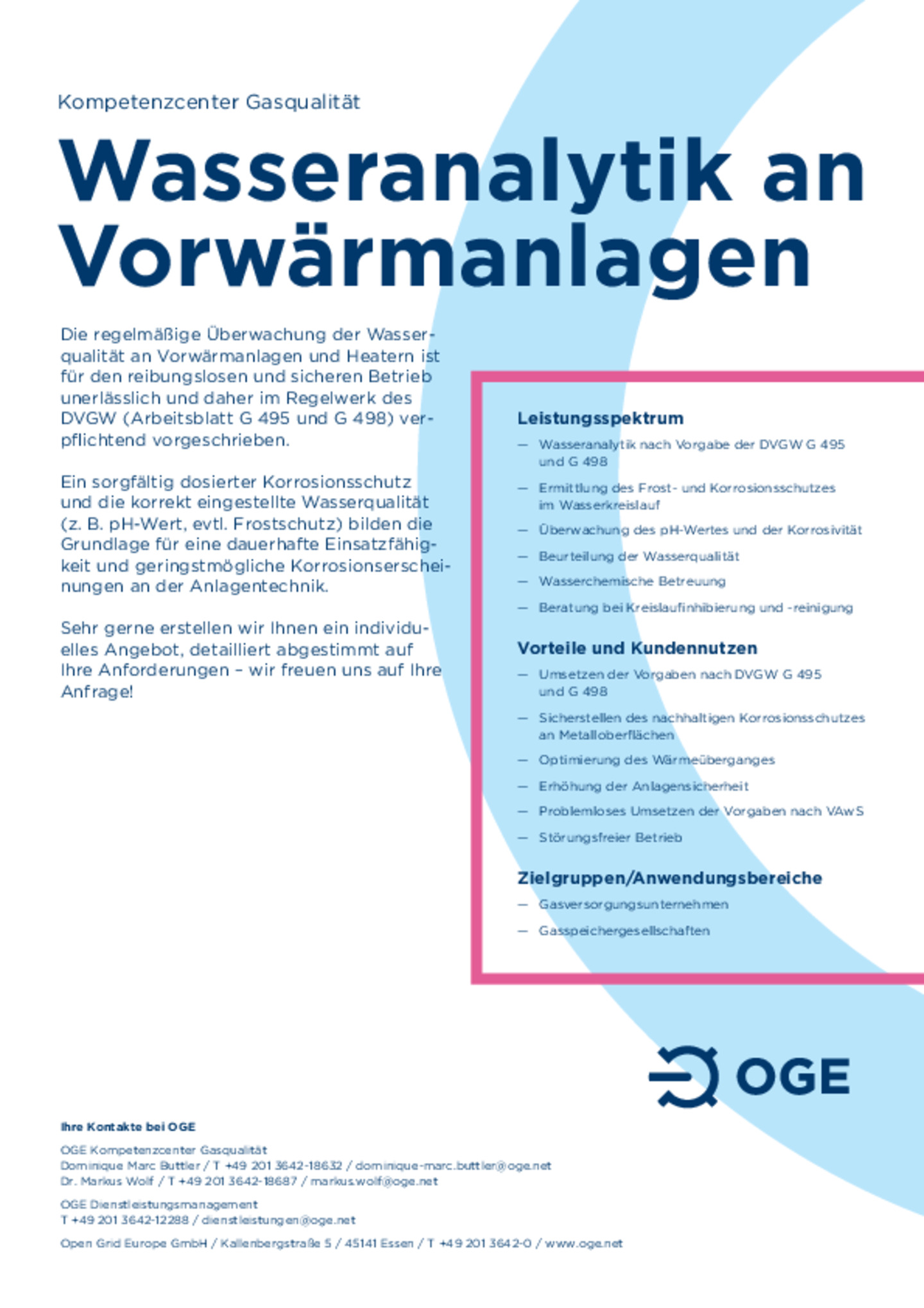 - Wasseranalysen an Vorwärmanlagen nach DVGW-Arbeitsblatt G 495