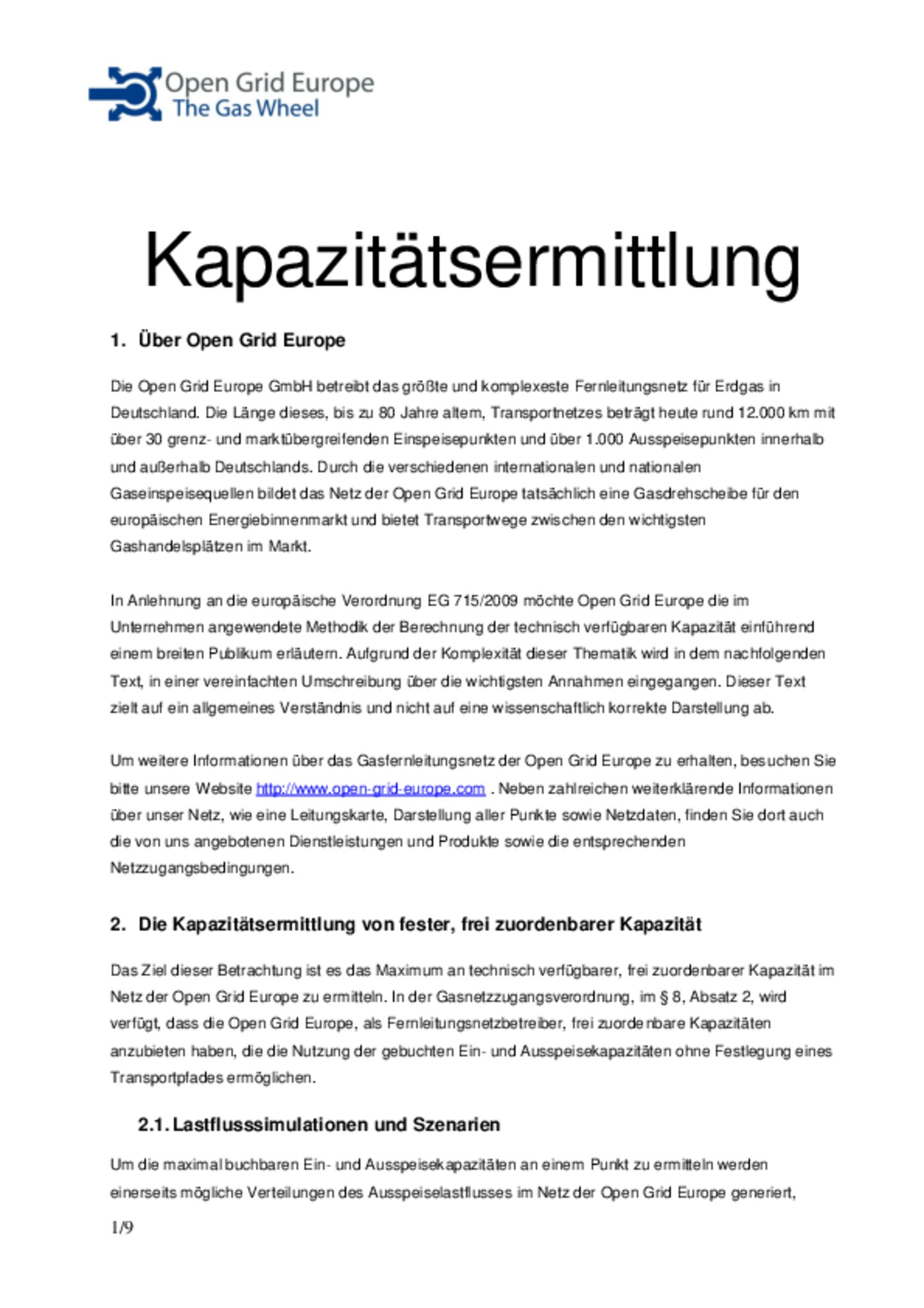 Beschreibung der Methodik und des Verfahrens zur Berechnung der technischen Kapazität: