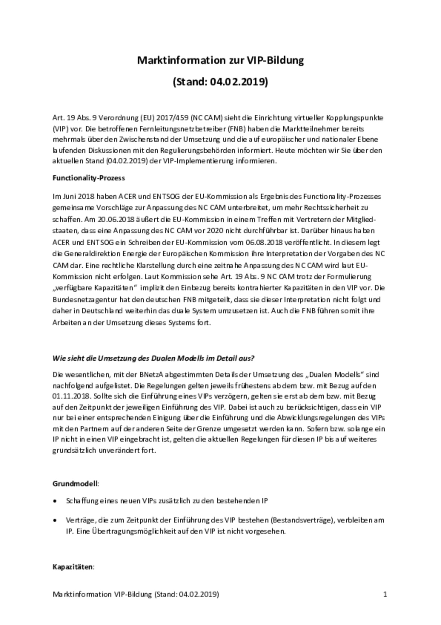 Des Weiteren werden die für den jeweiligen VIP verantwortlichen FNB den Markt zukünftig individuell je VIP über den jeweiligen aktuellen Umsetzungsstand und relevante Einführungstermine informieren.