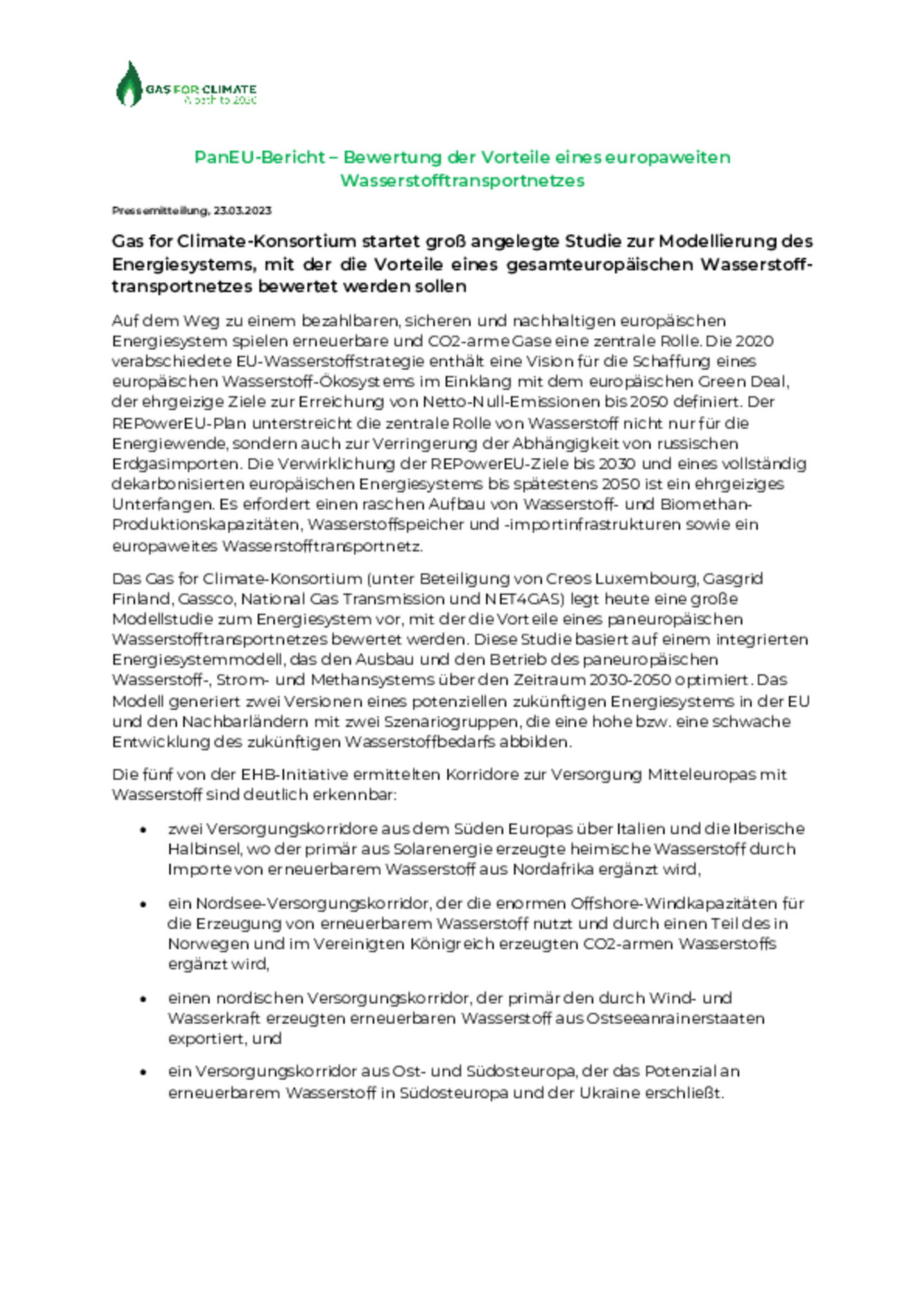 PanEU-Bericht – Bewertung der Vorteile eines europaweiten Wasserstofftransportnetzes