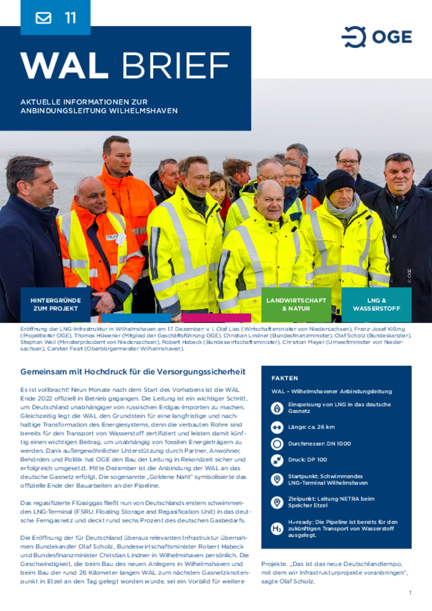 Zuverlässige und sichere Fertigstellung der WAL in Rekordgeschwindigkeit. WAL transportiert LNG aus Wilhelmshaven in das deutsche Ferngasnetz und trägt zur deutschen Energieversorgung bei. Leitung ist H2-ready und ein wichtiger Eckpfeiler für die künftige Wasserstoffwirtschaft in Deutschland