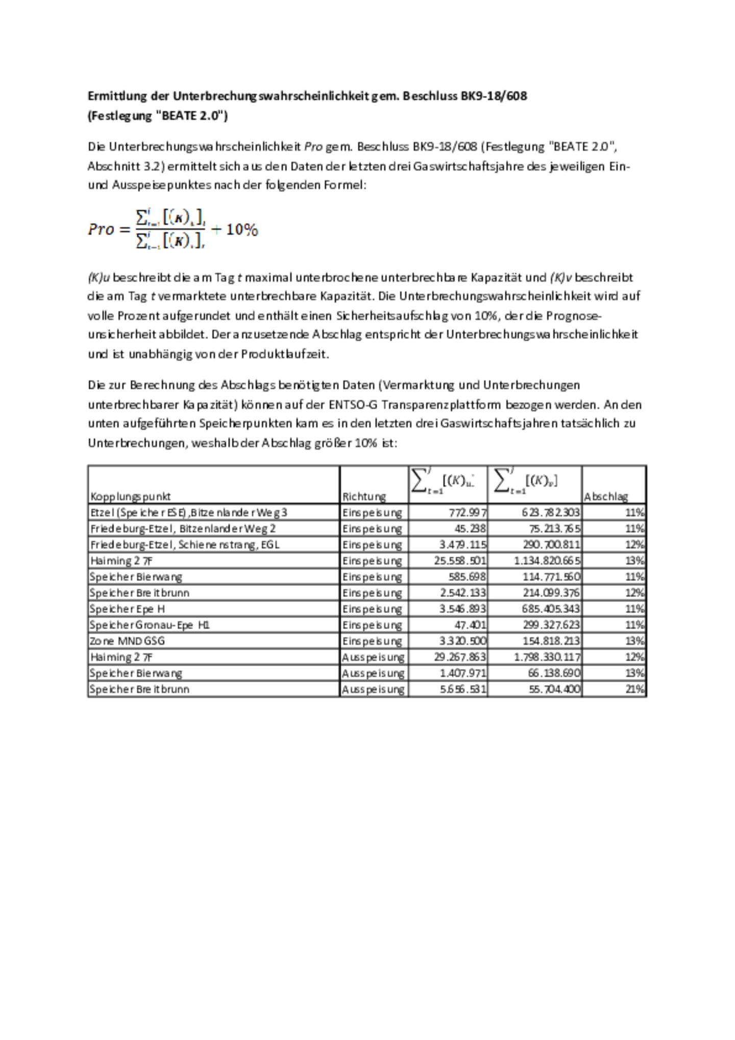 Ermittlung der Unterbrechungswahrscheinlichkeit gem. Beschluss BK9-18/608 (Festlegung "BEATE 2.0")