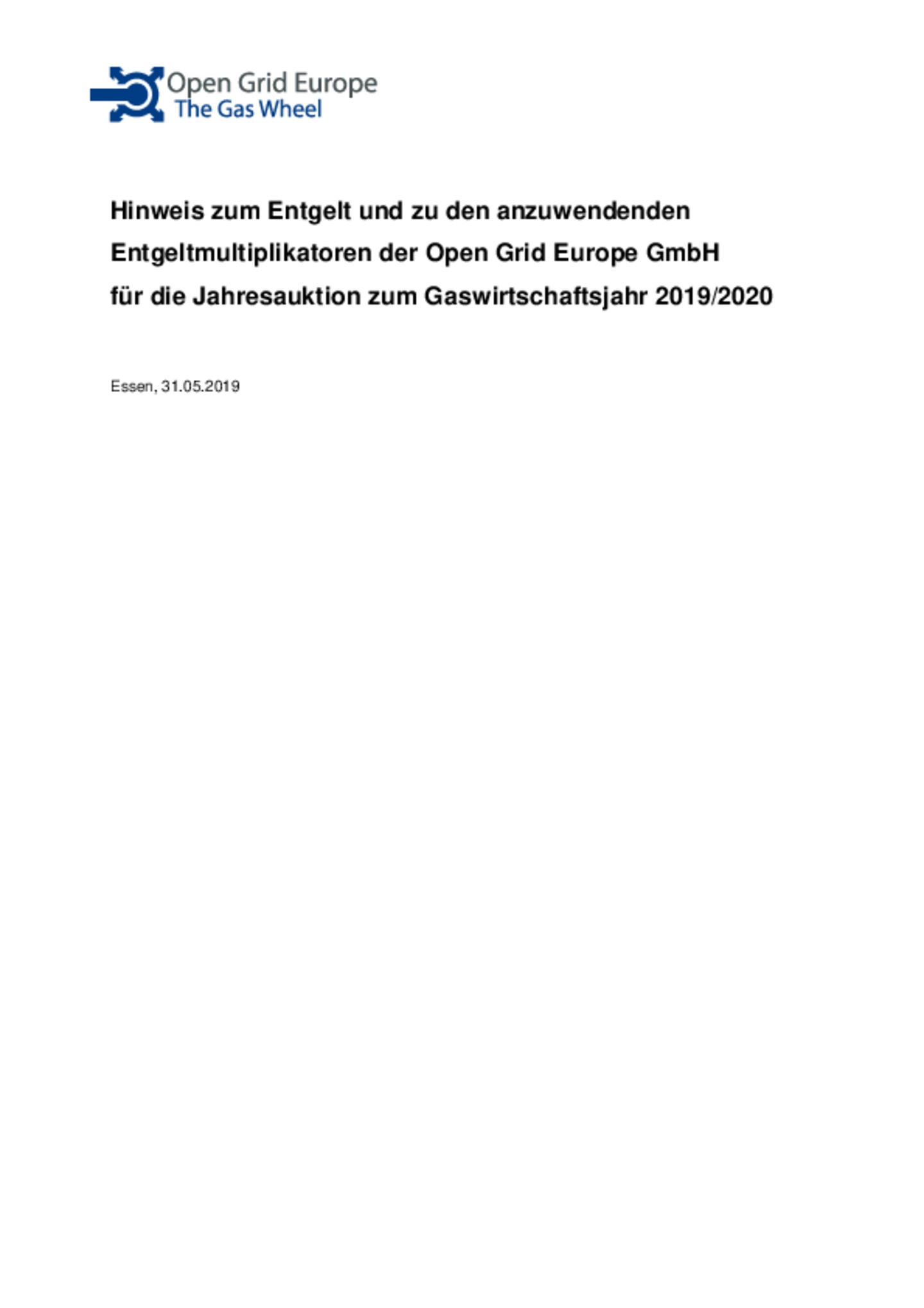 Hinweis zum Entgelt und zu den anzuwendenden Entgeltmultiplikatoren der Open Grid Europe GmbH