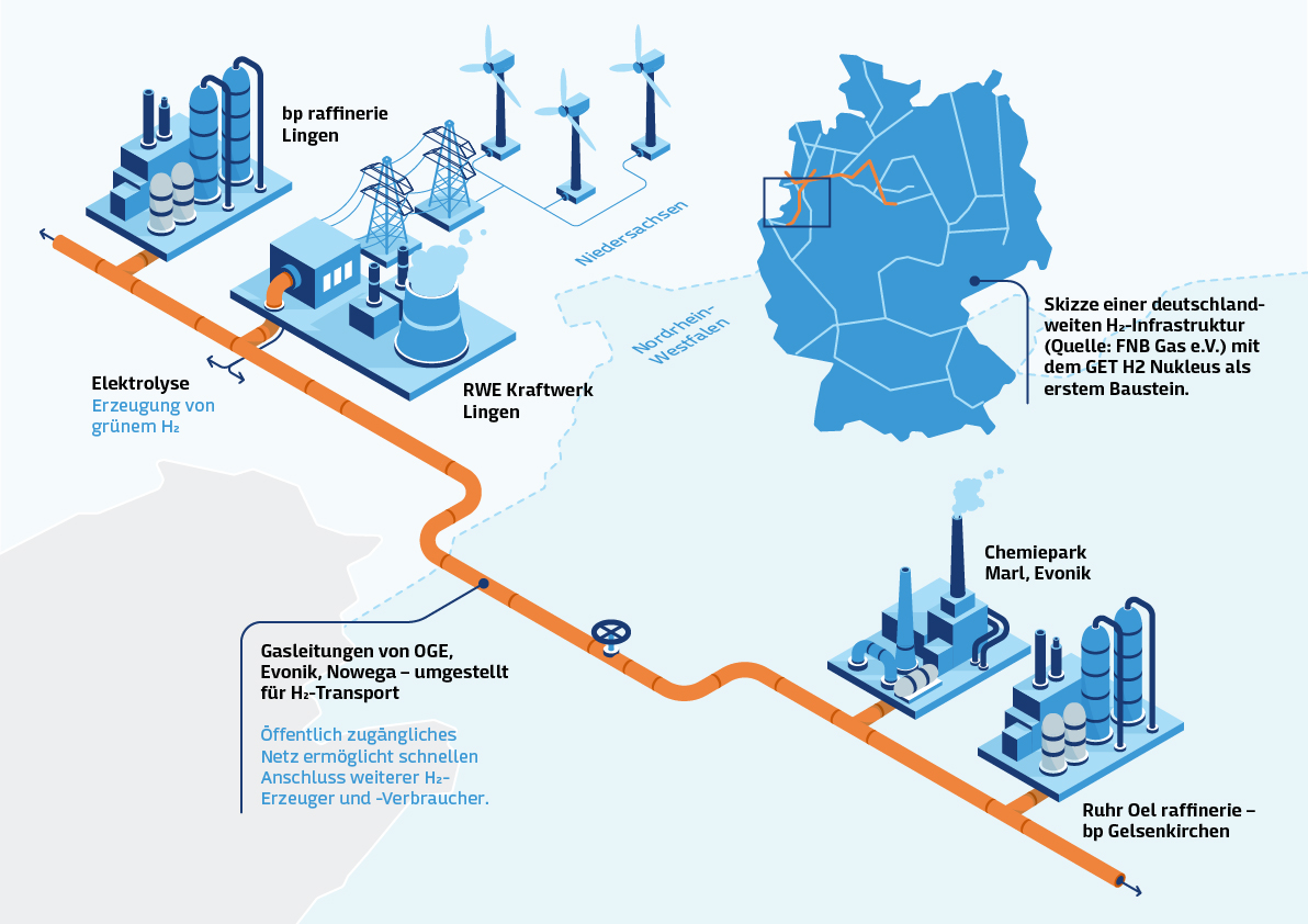 Unter dem Motto „Rohr frei für H2“ haben die Ferngasnetzbetreiber Nowega und OGE heute in Niedersachsen einen wichtigen Schritt auf dem Weg ins Wasserstoffzeitalter gefeiert. Erstmals in Deutschland …wurde auf der OGE Verdichterstation Emsbüren mit der Umstellung einer Ferngasleitung auf den Transport von Wasserstoff begonnen.