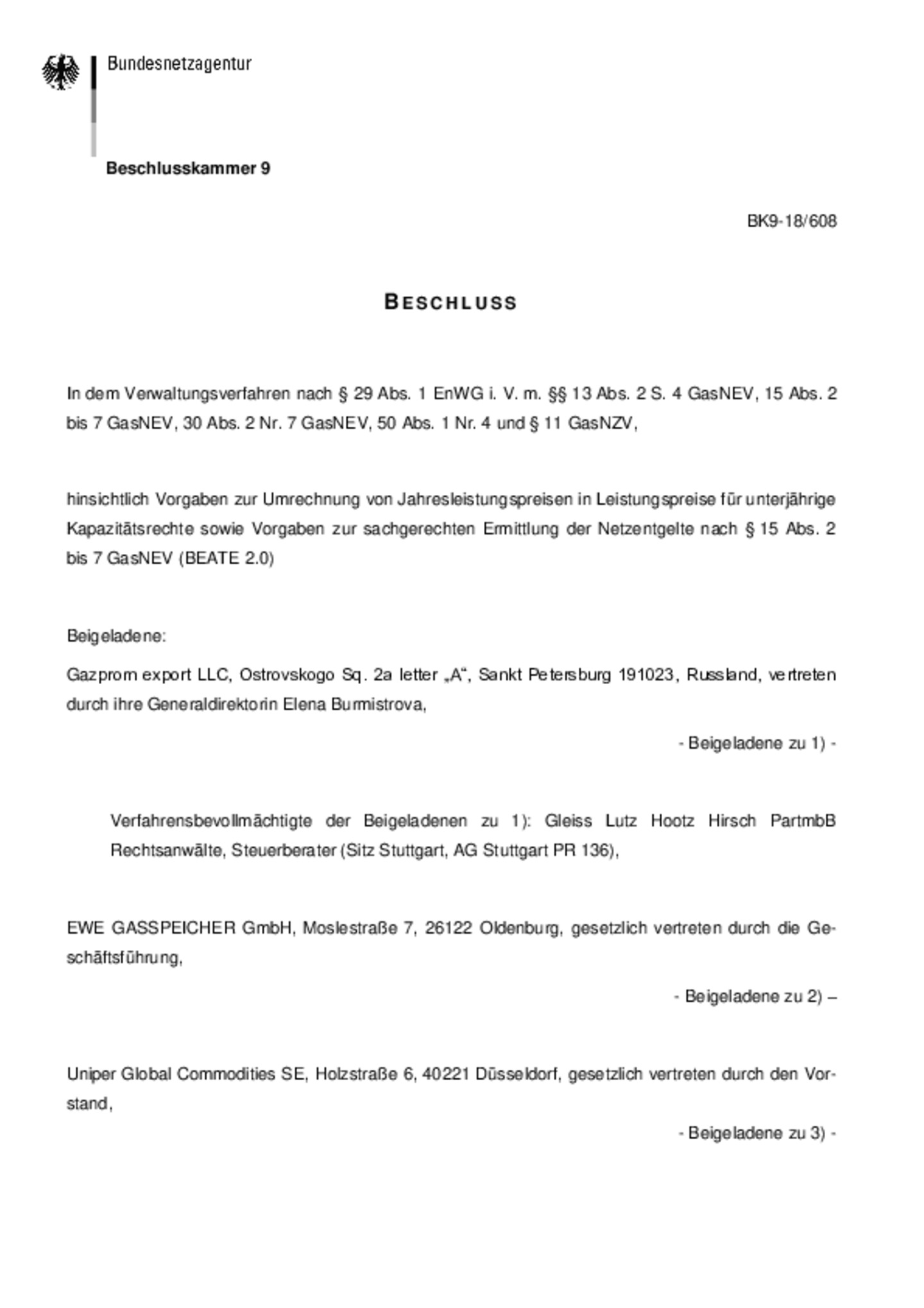 Publication by Open Grid Europe GmbH according to the network code on harmonised transmission tariff structures (Regulation (EU) 2017/460)