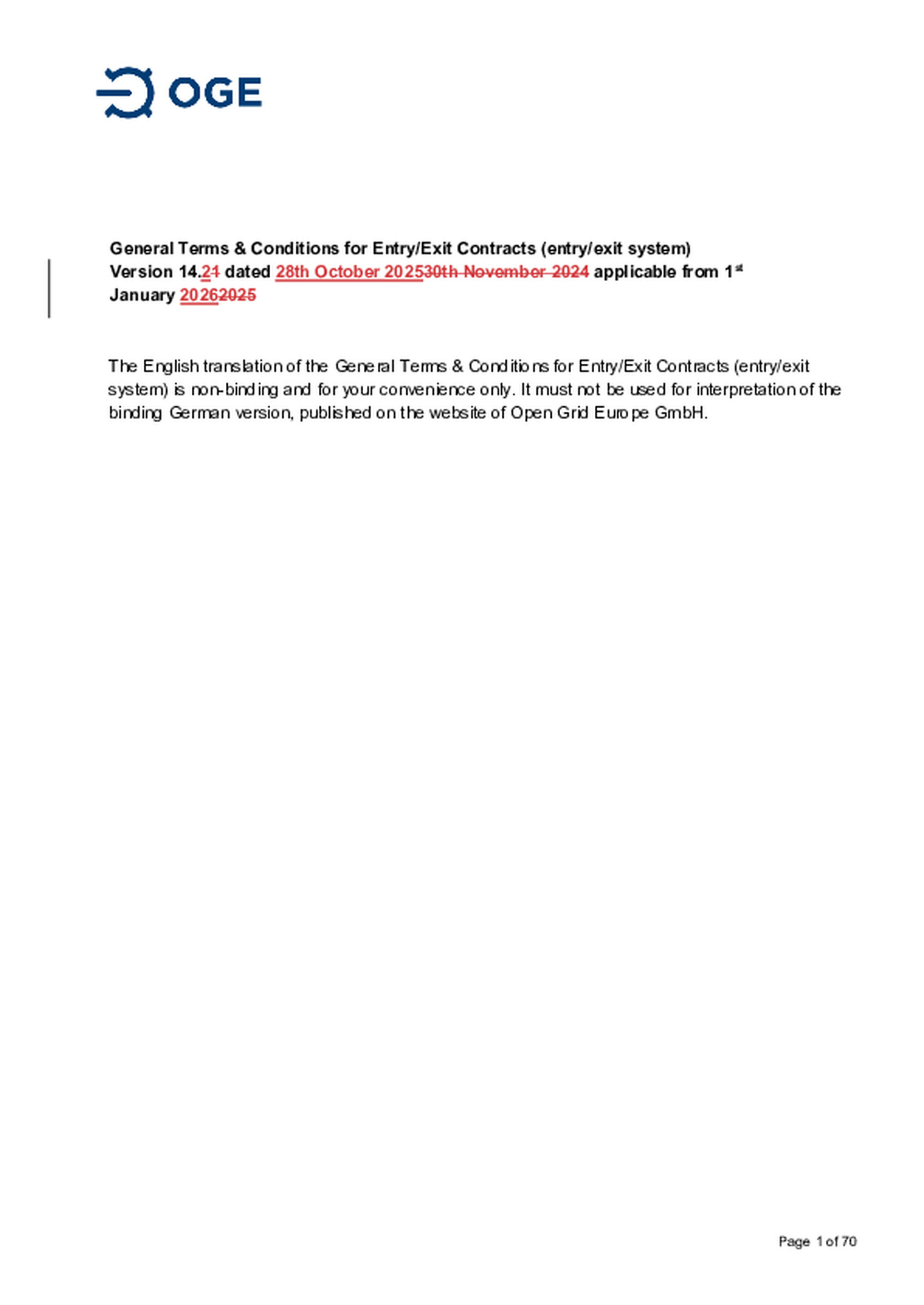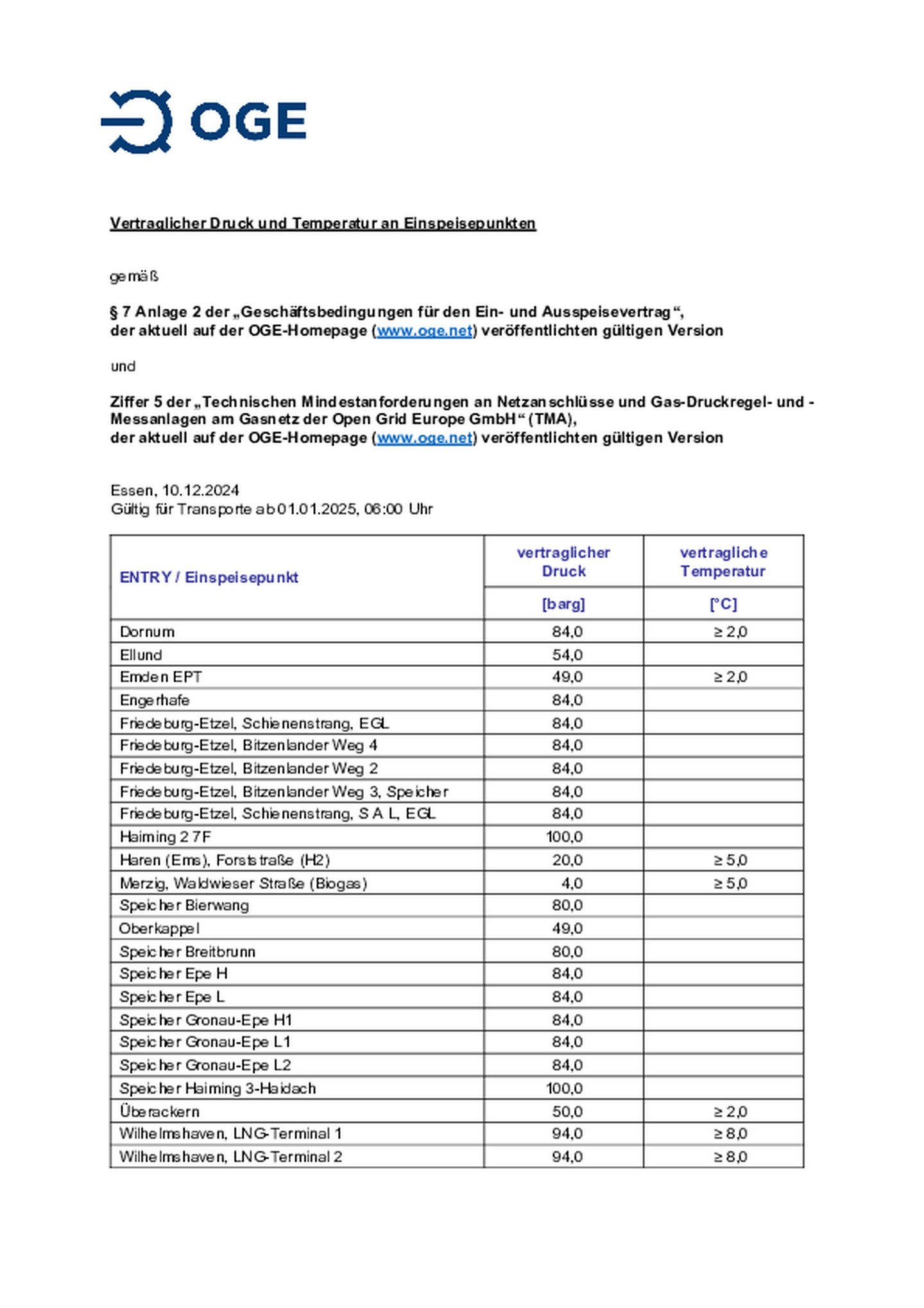 Supplementary Terms and Conditions of Open Grid Europe GmbH