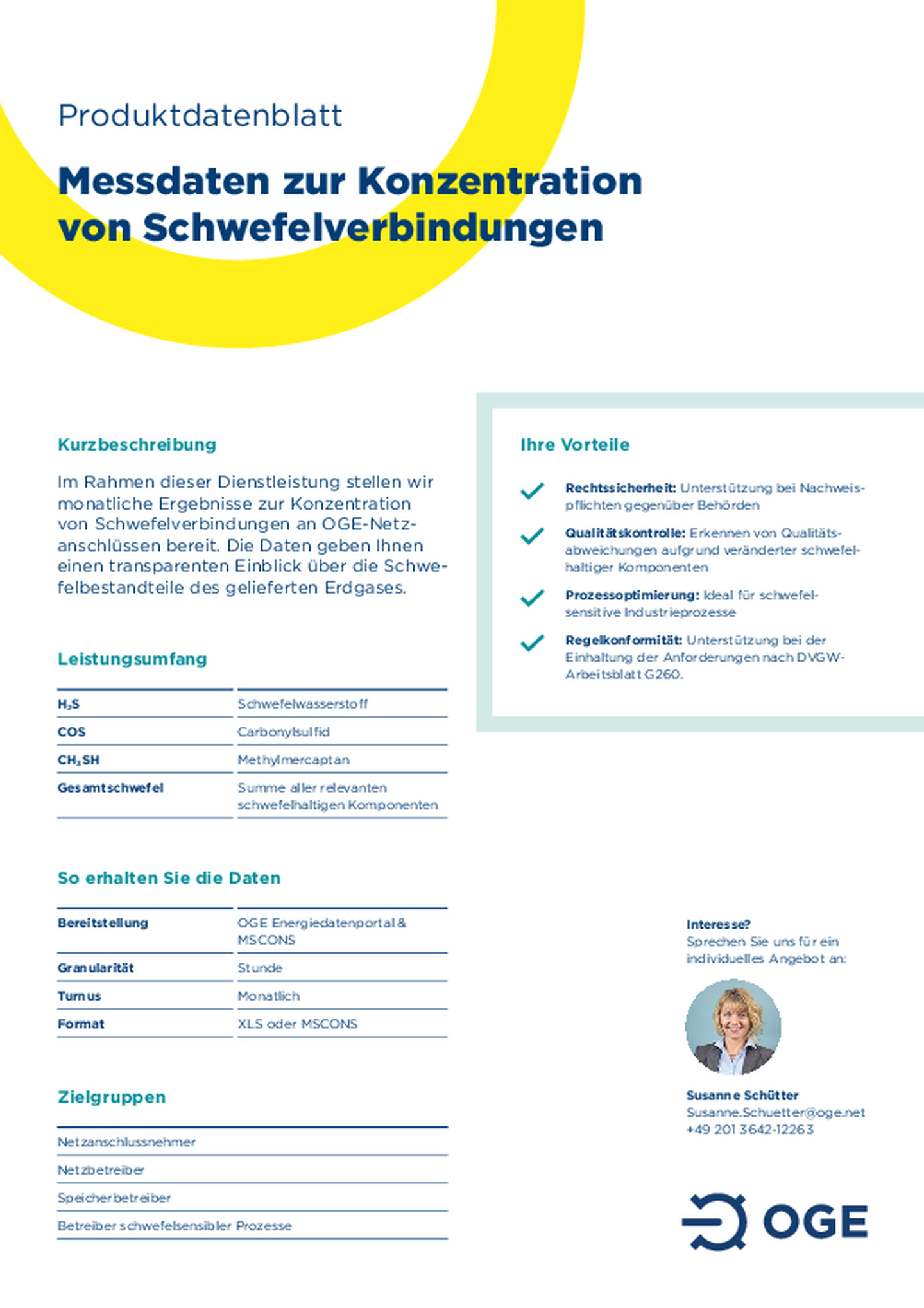 - Measurement data on the concentration of sulfur compounds: monthly results on the concentration of sulfur compounds at the grid connection points relevant to you.