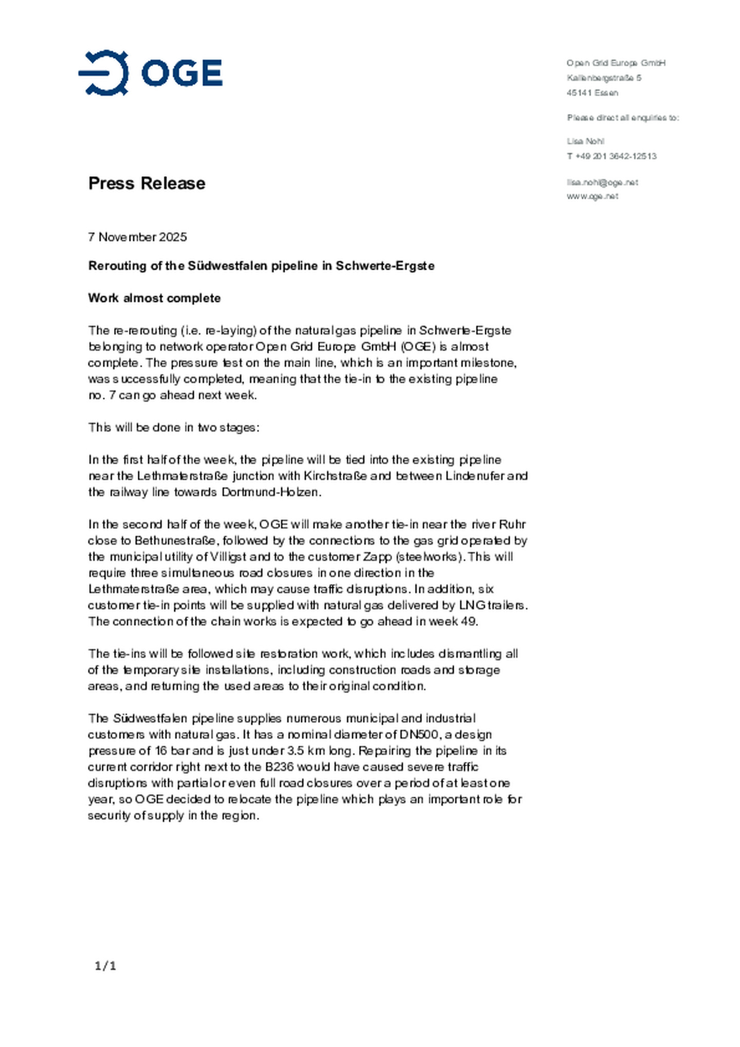 Supplementary terms and conditions of Open Grid Europe GmbH for internal orders for downstream network operators as of 01.01.2026 – published on 31.10.2025 (only in German)