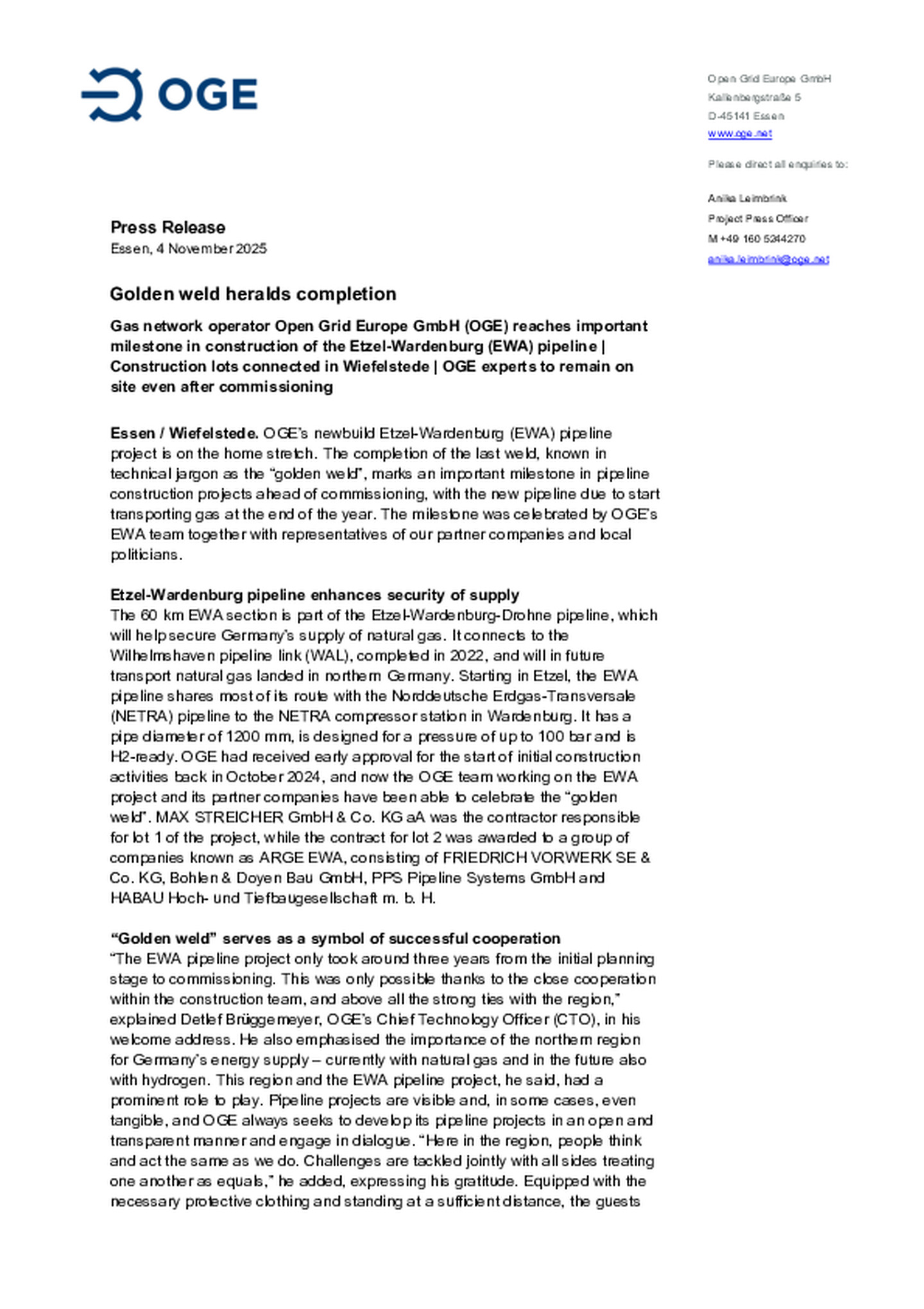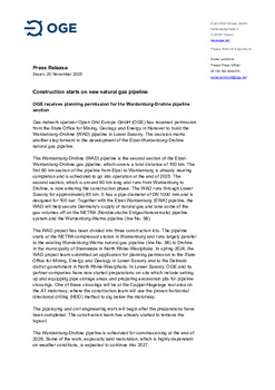 Upon receipt of the planning approval decision, OGE began preparatory construction work in Lower Saxony, such as preparing and equipping the pipe storage sites.