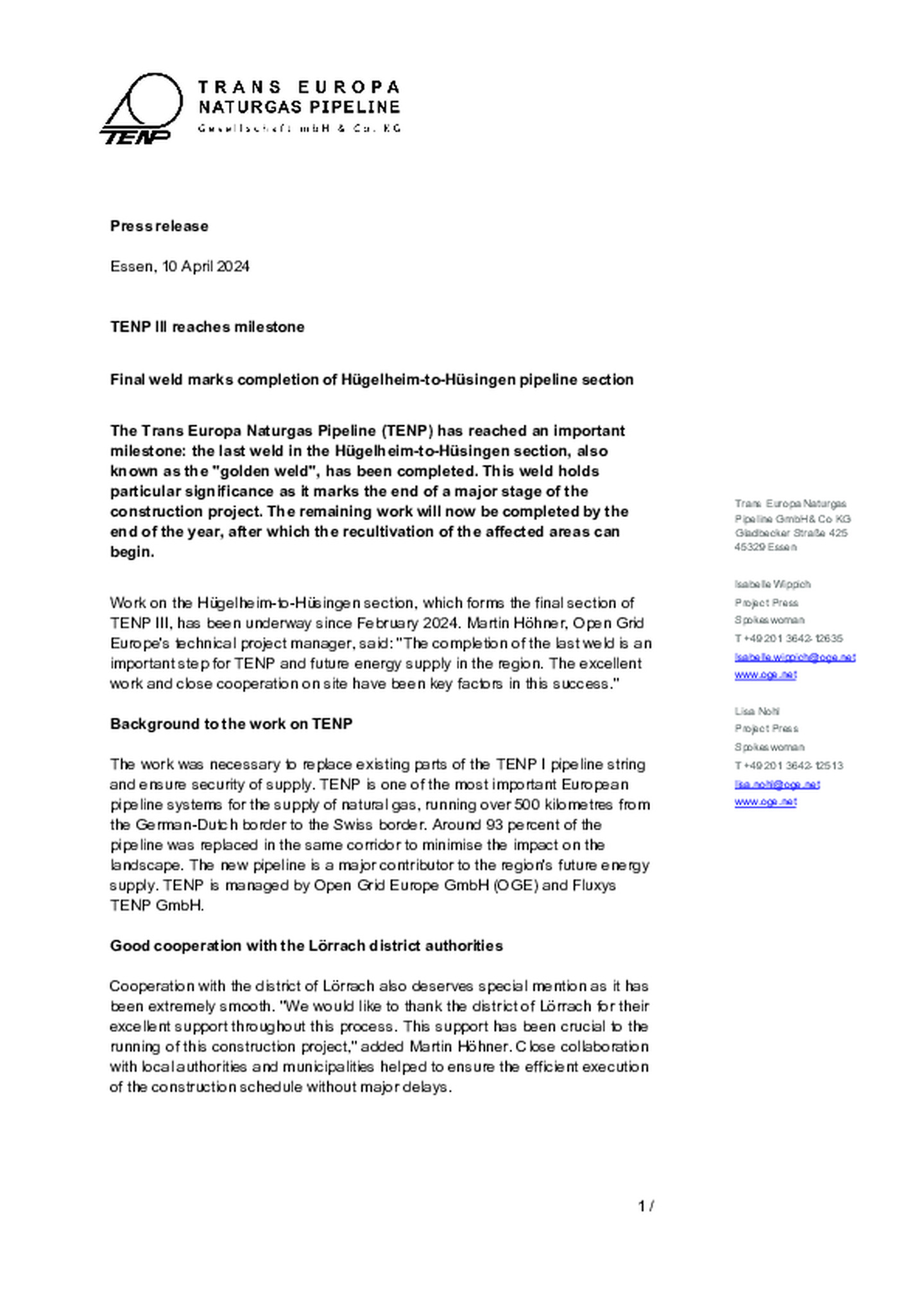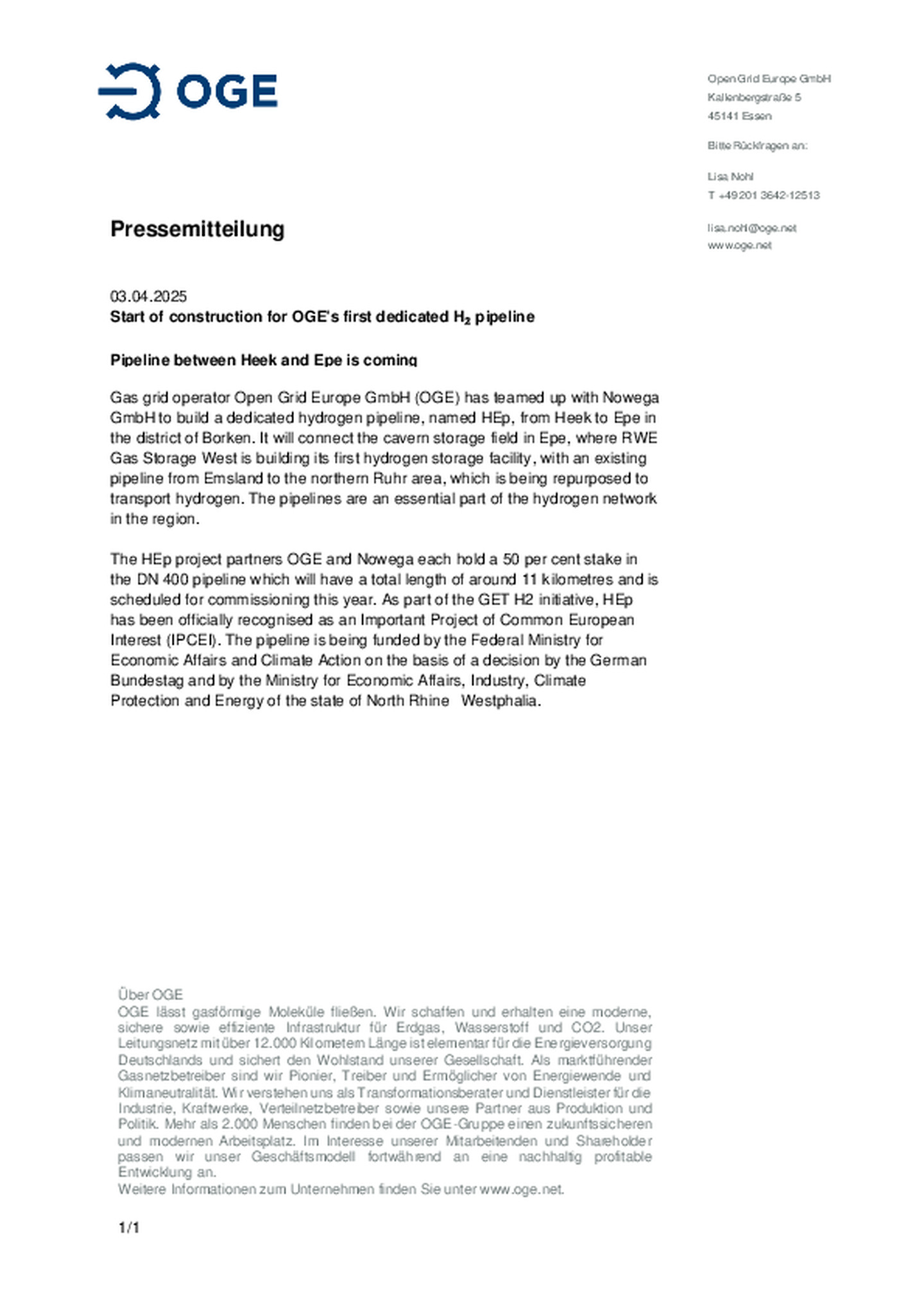 issued by the hydrogen network operators Nowega GmbH, Open Grid Europe GmbH and Thyssengas GmbH dated 23 June 2025